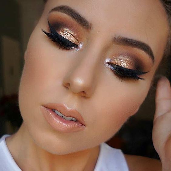 Pero si eres un poco más atrevida y lo tuyo es el glam; lo ideal es llenar tu maquillaje con tonos dorados… Checa estas ideas…