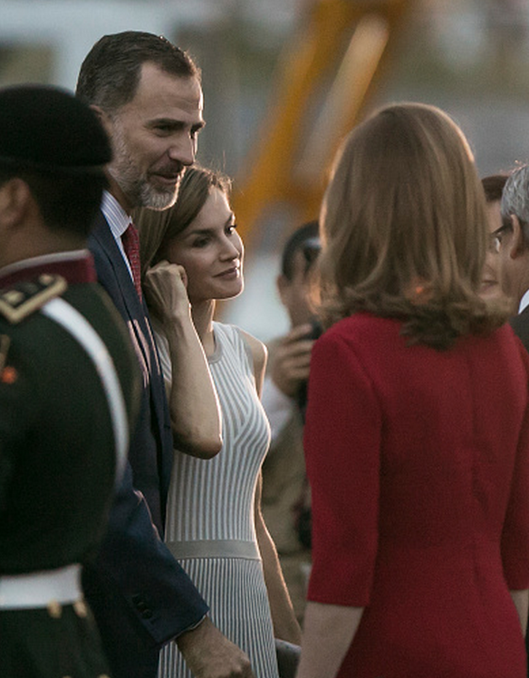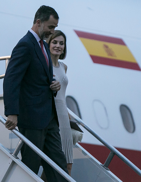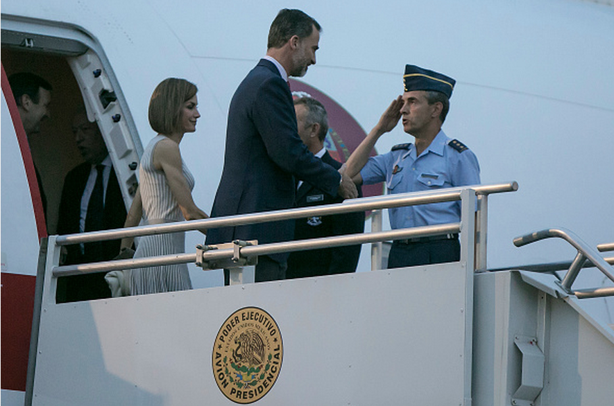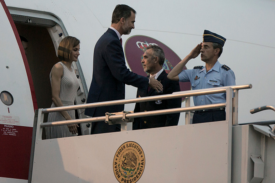 Sus Altezas Reales descendieron de su avión poco después de las 8 de la noche en el Aeropuerto Internacional de la Ciudad de México. Letizia y Felipe, fueron recibidos por el canciller Mexicano, José Antonio Meade, quien iba acompañado de su esposa Juana Cuevas de Meade, además de funcionarios de organismos y dependencias españolas y mexicanas.