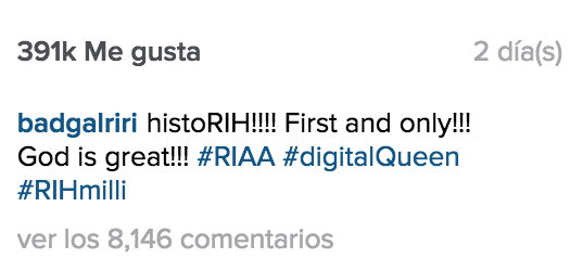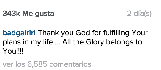 A través de su cuenta de Instagram, Rihanna compartió su exitoso momento, presumiendo que hizo historia y agradeciéndole a Dios por ello.