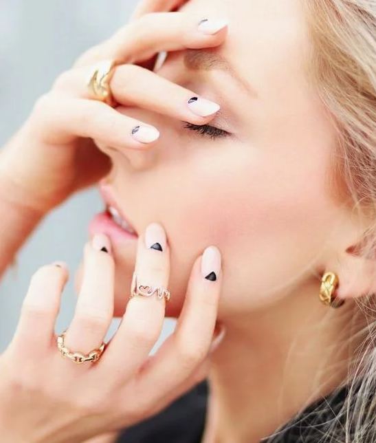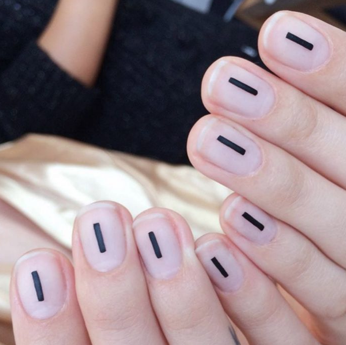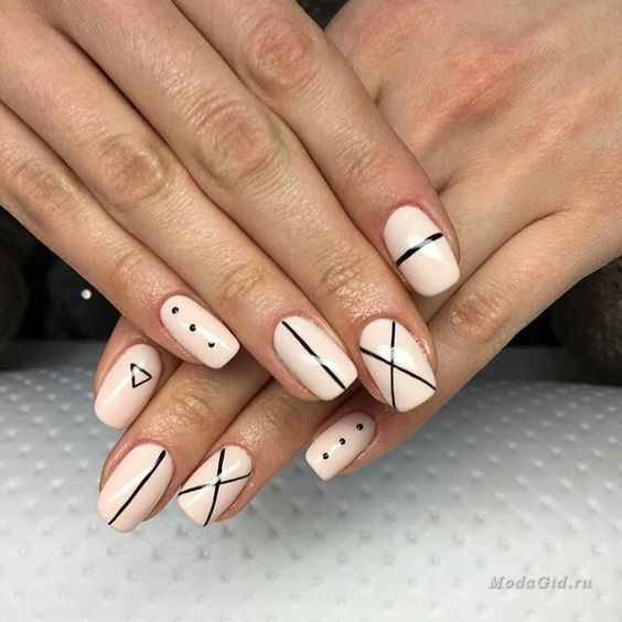 Amamos este color por darle un aspecto más limpio y delicado a nuestras uñas, además de aportarles una dosis de feminidad y elegancia. Solamente que cuenta con un divertido y classy giro, y es que está acompañado por diseños de líneas o puntos negros para resaltarlas más de lo normal.