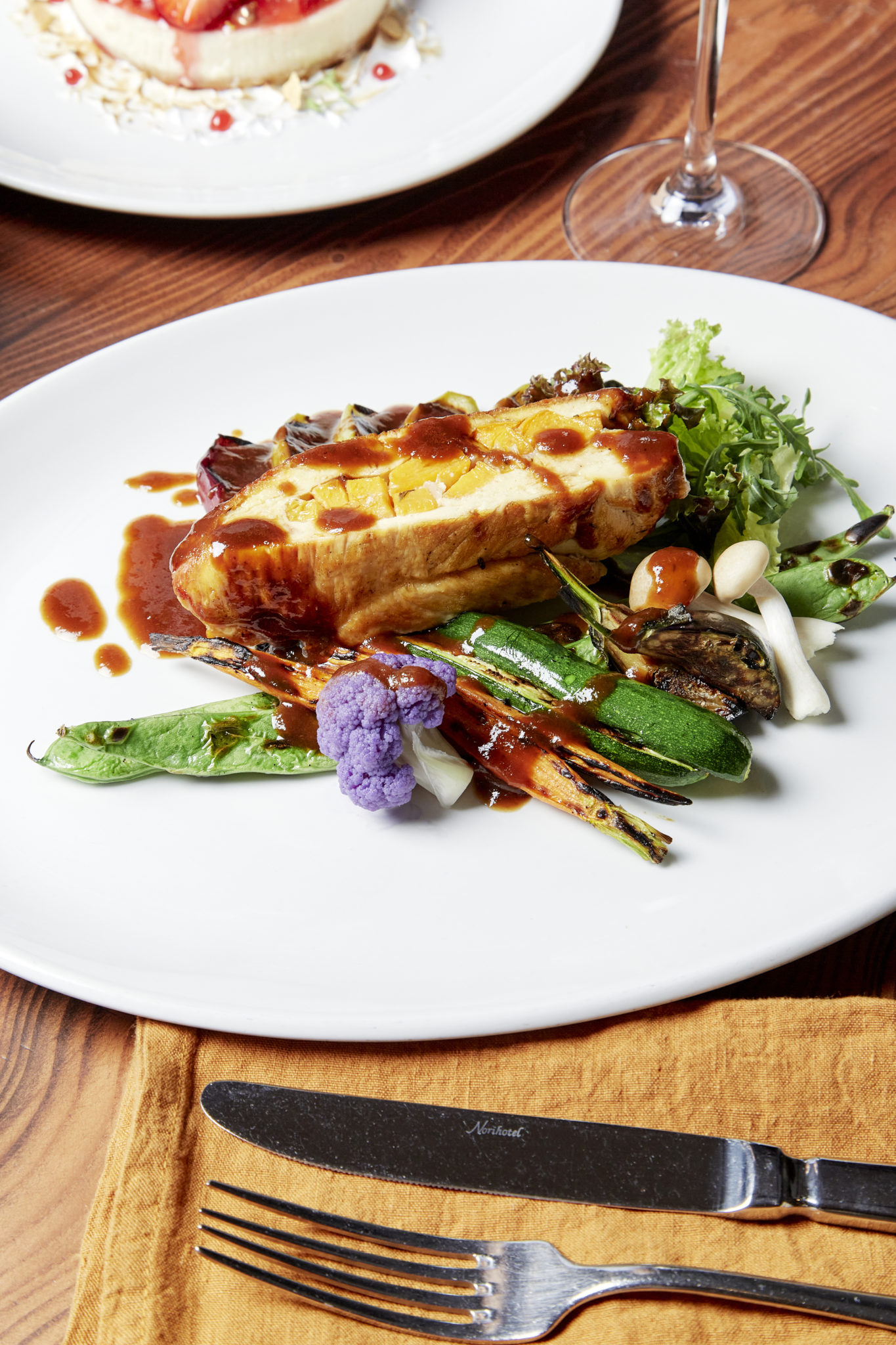 El menú de tres tiempos –que incluye en cortesía una copa de vino espumoso– se compone de una crema de calabaza rostizada con crostini de frutos secos, polvo de pepita tostada y una fresca ensalada de brotes; como plato principal, la tradicional pechuga de pavo rellena, bañada de una salsa de oporto y acompañada de manzanas grilladas, vegetales y un mix de hojas verdes; para terminar, el postre será un cheesecake de fresas frescas y compota. El costo será de $1,580 (por persona; IVA y servicio incluidos).