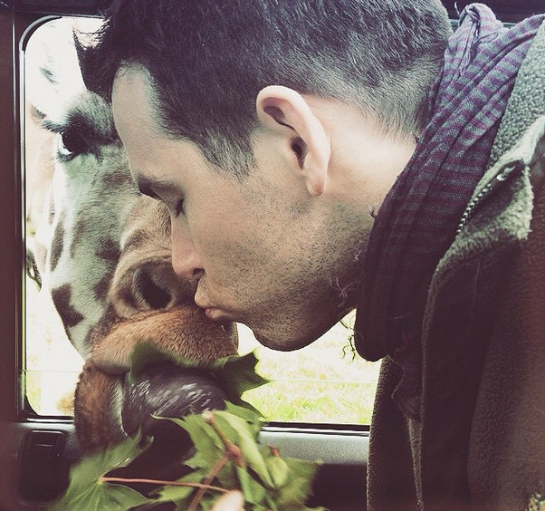 La sonrisa del guapo actor muestra todo el amor que puede compartir con estos bellos animales.