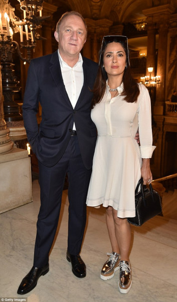 Durante el desfile de la diseñadora inglesa Stella McCartney en Paris Fashion Week, Salma Hayek estuvo en el front row del show acompañada de su esposo Francois-Henri Pinault.