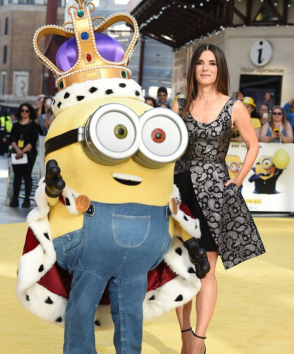 La actriz Sandra Bullock llegó al estreno mundial de la película ‘Los Minions’ en Londres, proclamándose la reina total de estos simpáticos personajes que salieron de la cinta ‘Mi villano favorito’.
