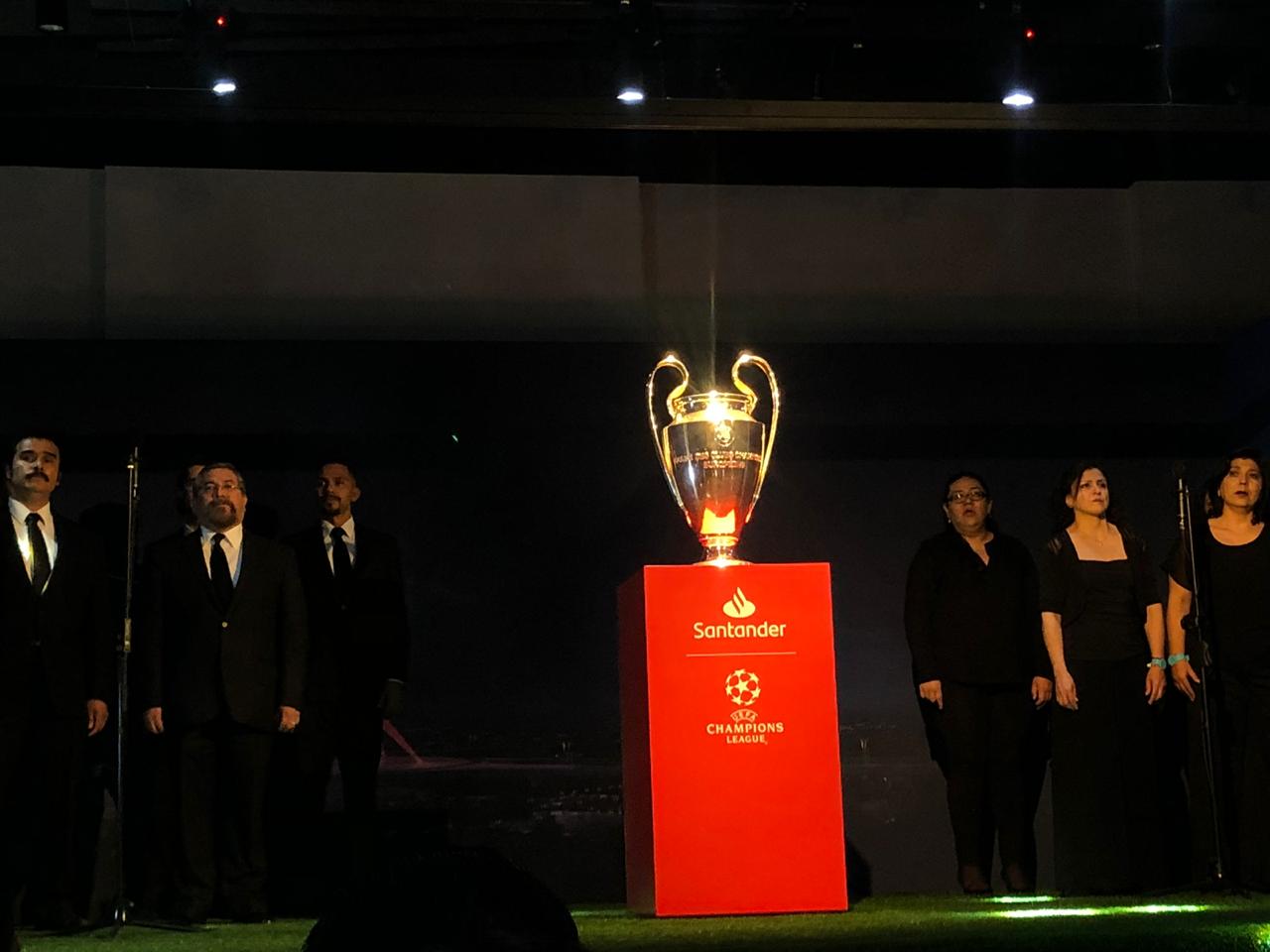 Santader no dejó de sorprender a los asistentes en cada detalle, pues hasta una orquesta en vivo con el famoso himno de la UEFA dio pie a que se develara la Orejona de la Champions. Entre aplausos de los convocados, Ronaldo apareció en VIVO y directo frente a todos los invitados.