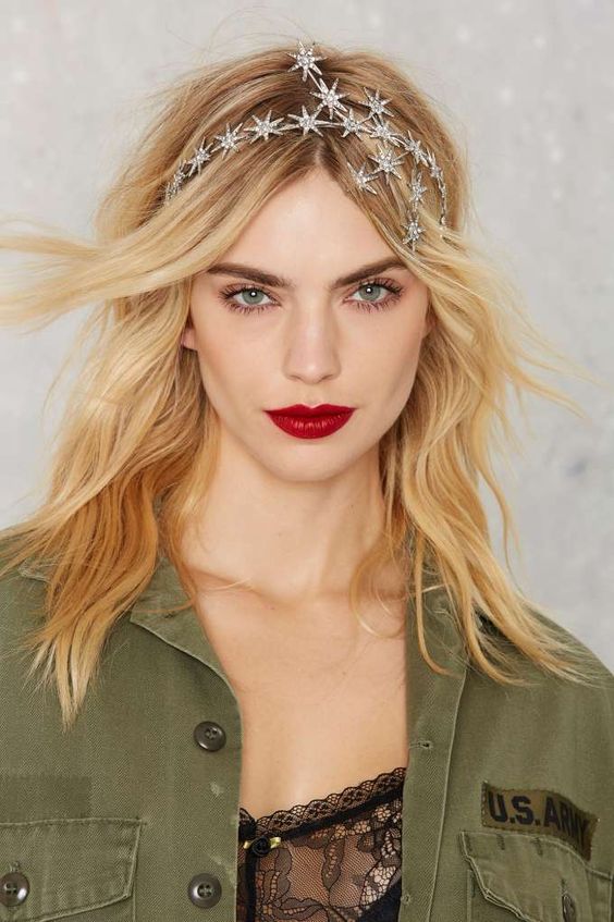 En los últimos desfiles de moda, hemos visto que los principales accesorios para el cabello consisten en tiaras con formas de estrellas, corazones o cadenas que atrapan cuarzos u otras piedras preciosas.