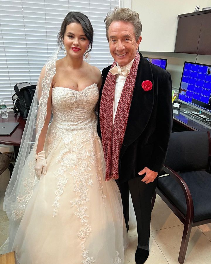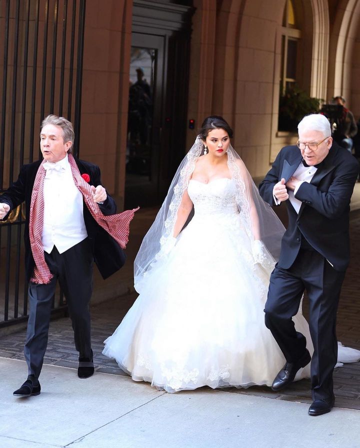 Selena se puso el vestido de novia para uno de los momentos que podremos ver en la tercera temporada de ‘Only Murders in the Building’, que llegará a Star+ próximamente.