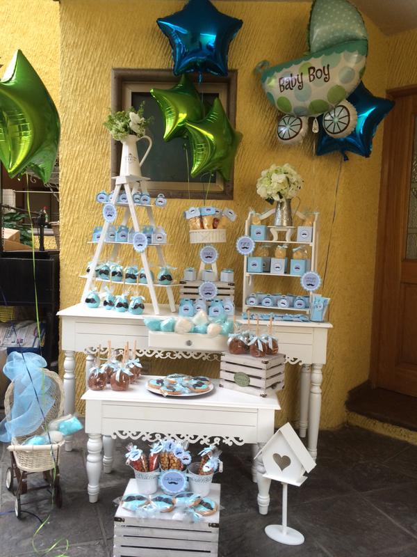 Comida, antojitos, recuerdo y sobre todo pastel (en tonos azules) fueron los protagonistas del festejo del niño que espera Navarro.