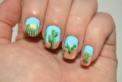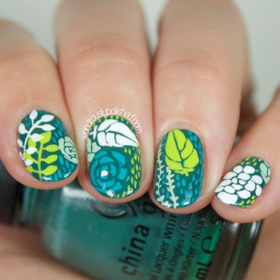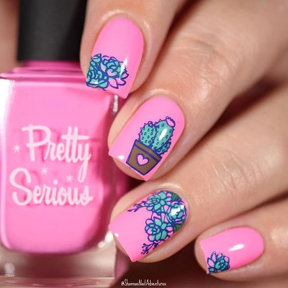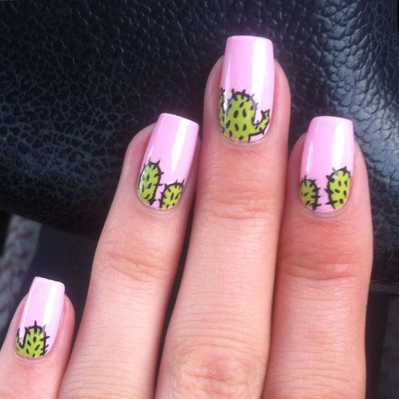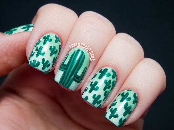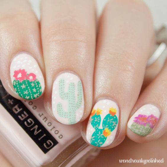 Los cactus, las flores y las hojas son los protagonistas y reinas de este mani, mismos que le darán a tus uñas un toque de frescura y color.