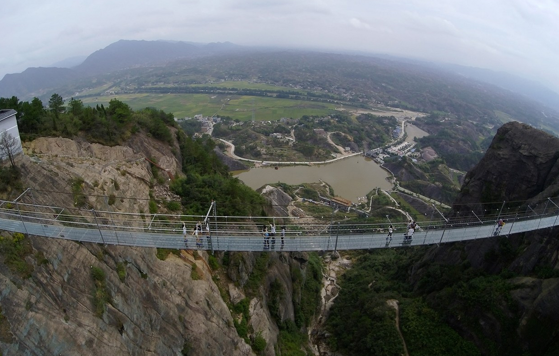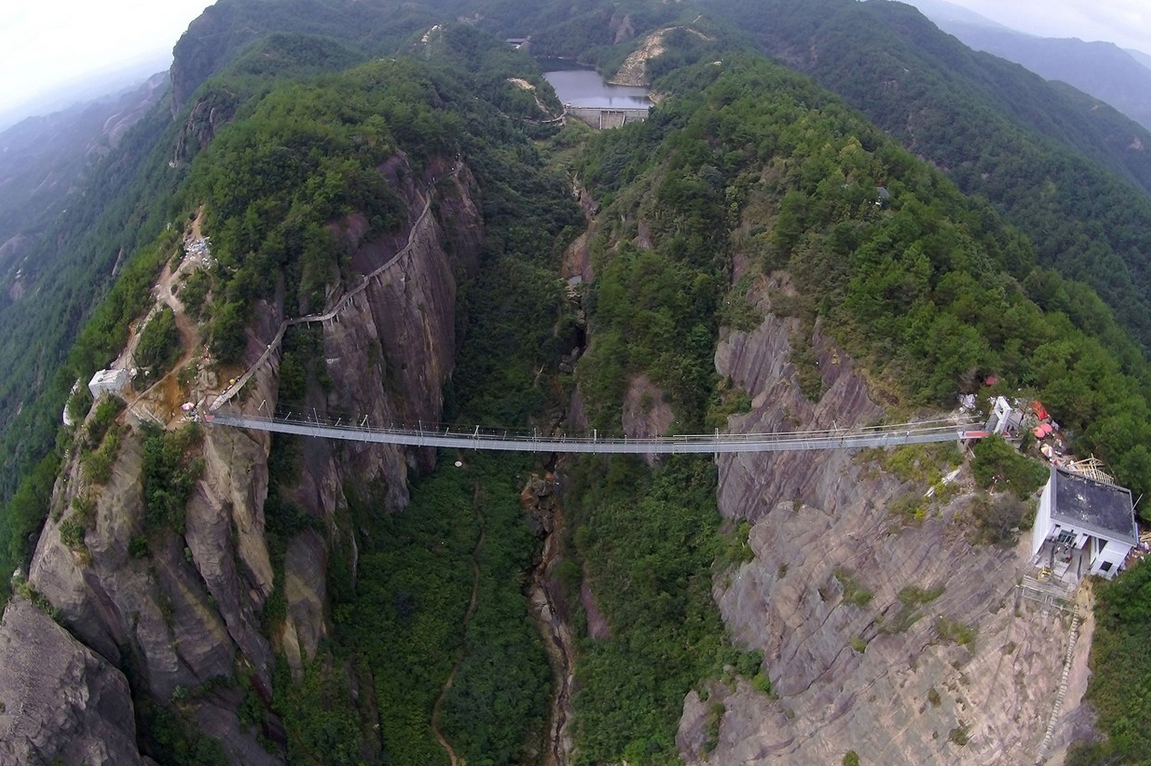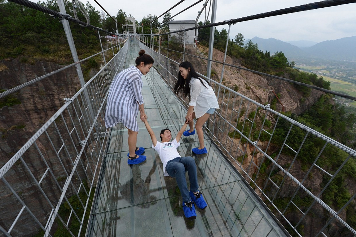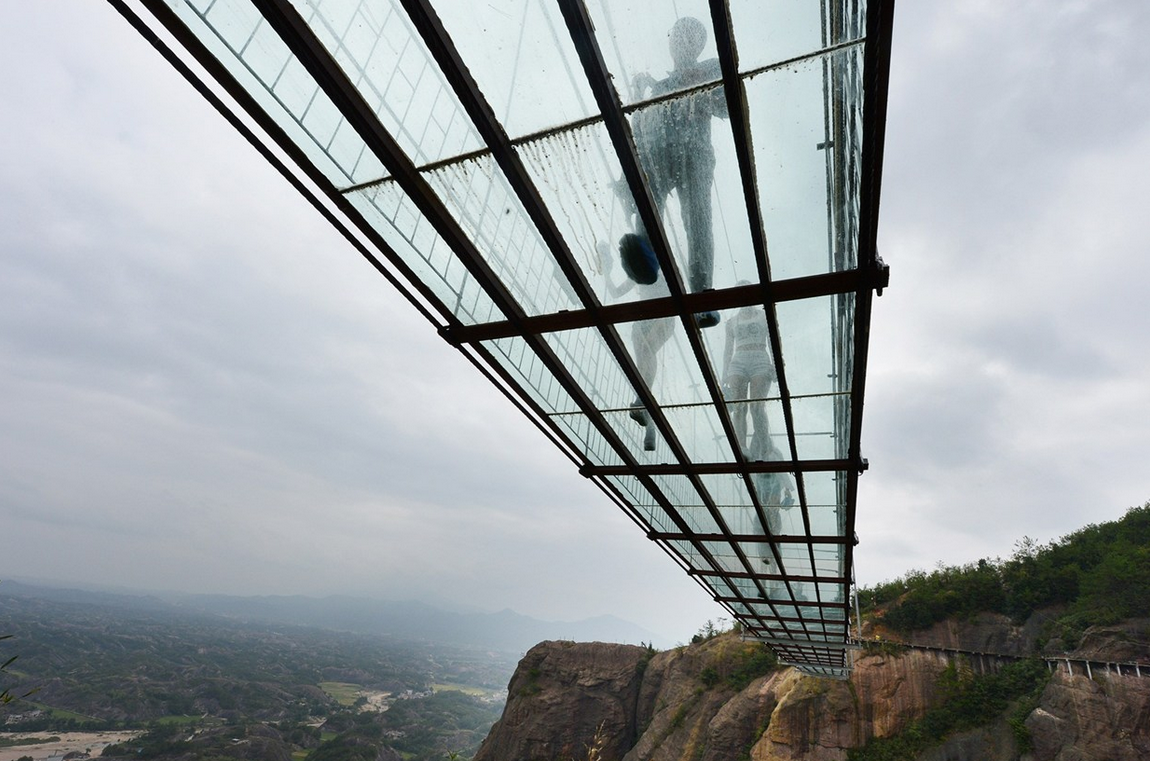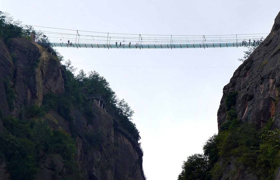 Hecho de cristal, con 180 metros de alto y 300 de largo, este nuevo puente en el Parque Nacional de Zhangjiajie es una aterradora atracción. Conocido como «El puente de los hombres valientes», la estructura se mece con el viento y estaba hecha de madera, originalmente. Está diseñado para soportar el peso de 800 personas y la capa de vidrio es doble, con un grosor de 24 milímetros.