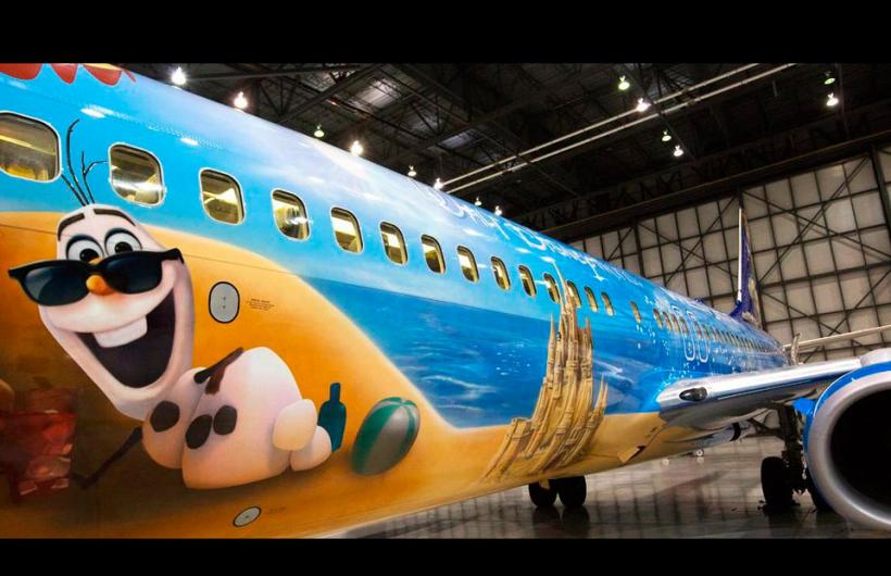 El exterior del Boeing 737 está pintado en su totalidad con los personajes de la película. En la cola se encuentran las hermanas Elsa y Ana, y en la punta está Olaf, rodeado de motivos tropicales. El avión muestra una transición de frío a calor que es repetida en el interior, pues los diseños de la cabina y los asientos imitan las temperaturas árticas, mientras que la parte de atrás tiene dibujos de clima cálido.