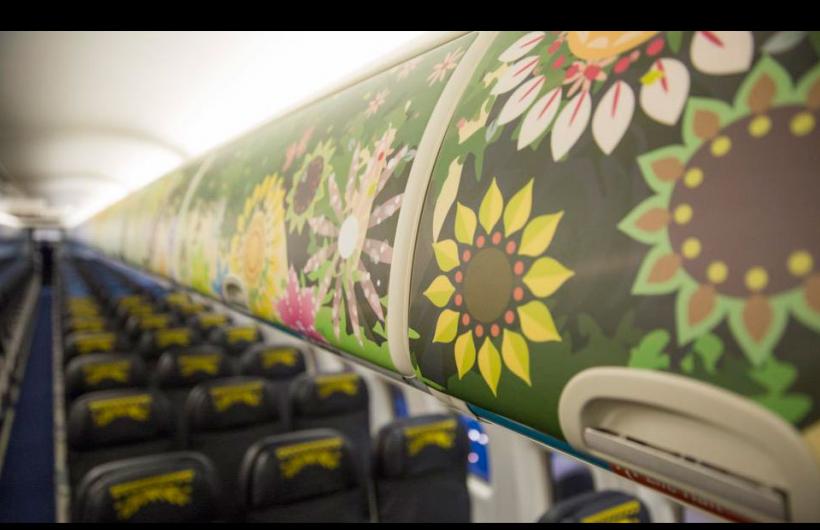 Para poder decorar la aeronave, se requirió del trabajo de artistas y pintores de Canadá, Estados Unidos y Alemania. Al equipo de seis personas le tomó 21 días terminar el diseño, en turnos de 12 horas, durante todo el día. Se utilizaron 23 colores diferentes.