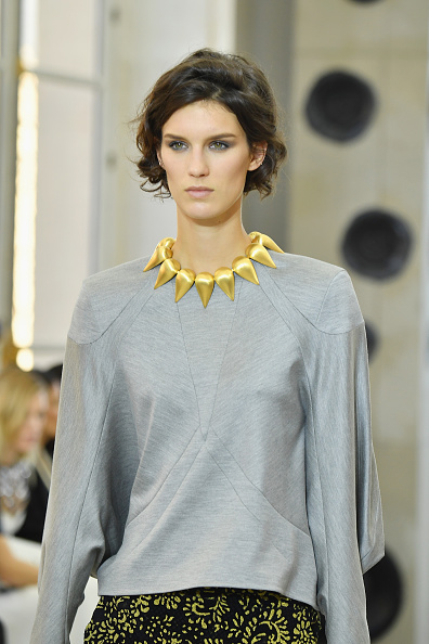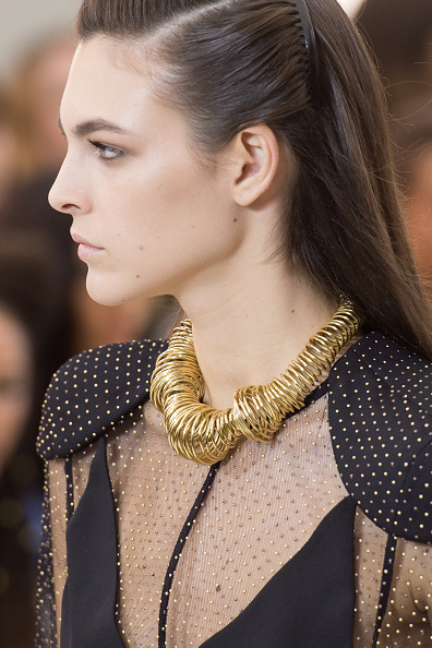 Uno de los detalles que nos enamoró y esperamos que se vuelva el objeto del deseo el siguiente año, es la gargantilla en forma de picos que adornaban las prendas de las modelos.