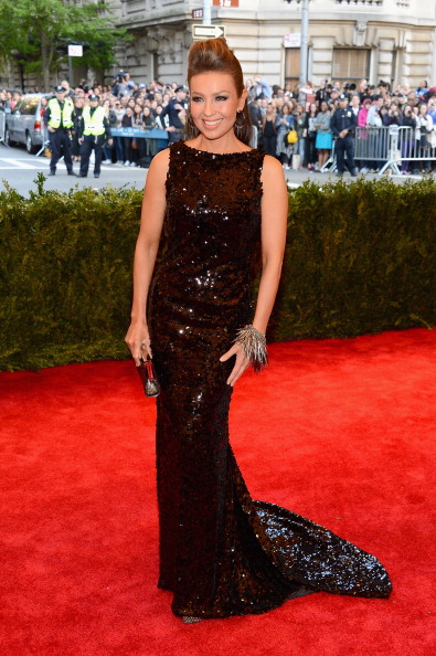 Para esta ocasión, Thalía caminó junto a su esposo Tommy Mottola por la famosa alfombra luciendo un espectacular vestido de lentejuelas negras de la firma estadounidense Tommy Hilfiger. Este vestido, de una sola manga, llevaba un impresionante escote y una abertura de infarto en la pierna, además de contar con una espectacular cola.