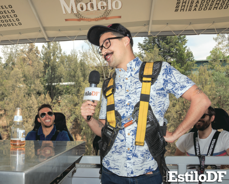 EstiloDF convocó invitados especiales para vivir una de las experiencias gastronómicas más originales de la ciudad de México. A 45 metros de altura, el Mirador Modelo ofrece una experiencia inigualable que consiste en disfrutar una comida estilo BBQ del restaurante Porco Rosso, mientras algunos de los mejores comediantes de nuestro país se lucen con un show de standup. Esta vez Mau Nieto fue el encargado de hacer reír a los presentes con sus ironías.