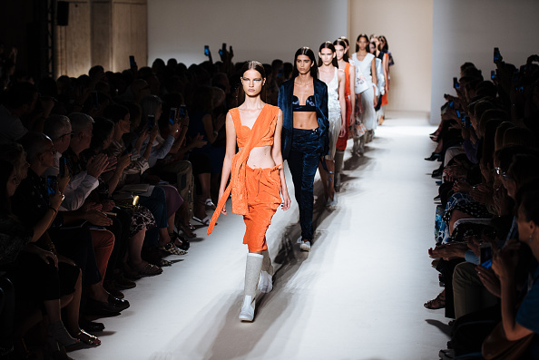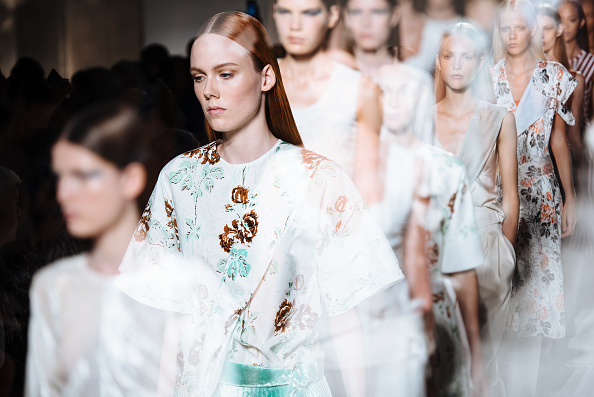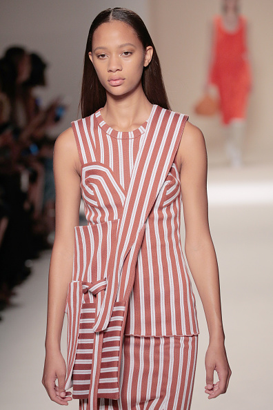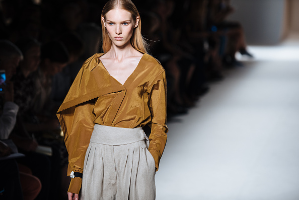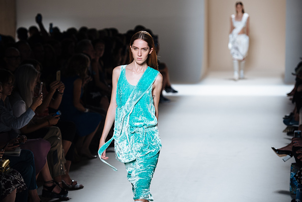 NEW YORK, NY – SEPTEMBER 11: A model walks the runway during the Victoria Beckham September 2016 New York Fashion Week Spring 2017 season at The Cunard Building on September 11, 2016 in New York City. (Photo by Randy Brooke/WireImage)
