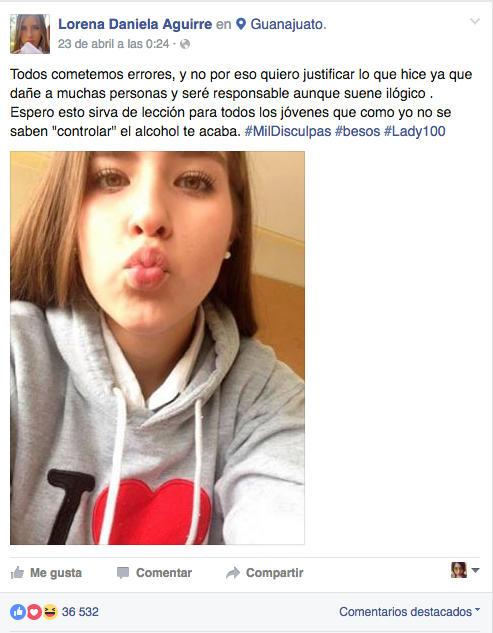 Este fin de semana las redes sociales se vieron invadidas por un nuevo personaje que manejaba en estado de ebriedad: Daniela Lorena Aguirre de 18 años, mejor conocida como #Lady100pesos, fue sorprendida por la autoridades en las calles de Tepetapa, Guanajuato al causar daños a otros automóviles en su intento de escapar.