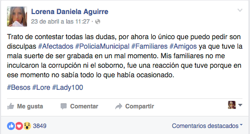Se esperaba que los elementos de la policía intentaran detener a la joven, pero ella se resistió ya que argumentaba que “estaba bien”, además de pedir que la dejaran ir, pues les ofrecía un billete de 100 pesos como soborno, razón por la cual obtuvo su tan famoso título de lady.