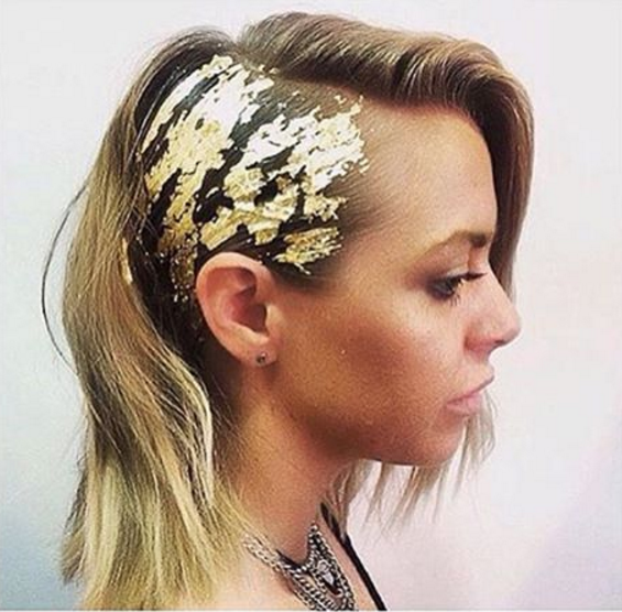 Consiste en tener “una hoja de oro” incrustada en el cuero cabelludo como si se tratara de una placa del metal precioso y va pegado a la parte que más te guste de tu cabeza, ya sea en las raíces, en un lado de tu melena o simplemente para adornar un peinado.