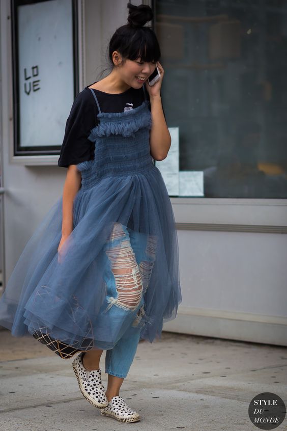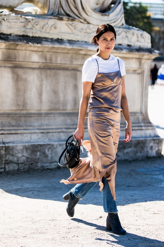 Lo más importante que debes tener en cuenta es que debes llevar jeans lo más ajustados posibles, hay unas que sí se atreven a llevar acampanados e incluso los famosos pantalones de vestir, pero a nosotras nos encanta la idea de uno bien ajustado. No importa si es mom jeans, boyfriend o cropped, lo importante es que te sientas cómoda con tu vestido y lo uses a la perfección.