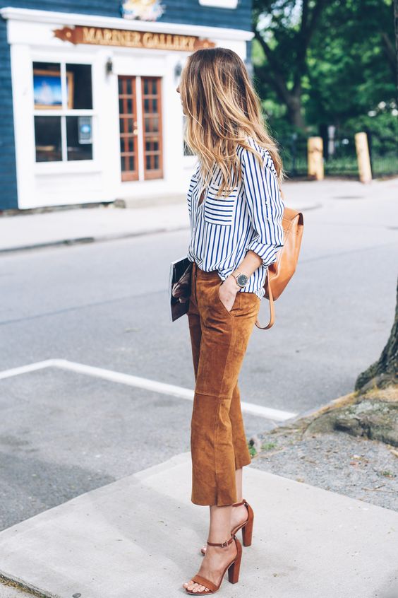 Las prendas camel no a fuerza tienen que ser aburridas. Prueba con texturas diferentes como el ante o con cortes fuera de lo común como el de pata de elefante, agrégale un plus con tacones, camisas o bolsas que contrasten. Ideales para una cena familiar.