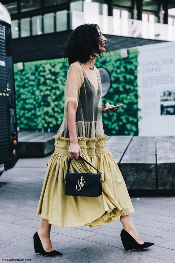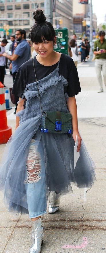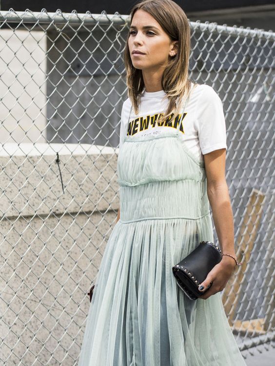 Utiliza un vestido de tul debajo de un outfit casual como unos jeans con una playera y sin duda alguna te verás súper trendy y súper cool.