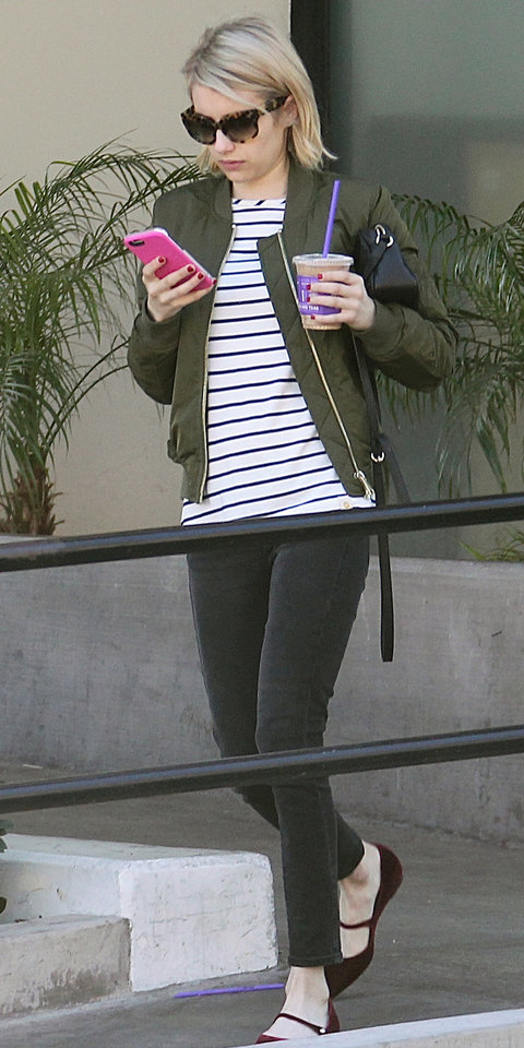 Una de las prendas que está causando furor entre las celebridades es la bomber jacket, pero no sólo como las típica abultada, negra o colegiala; lo de hoy es llevarla con la tendencia militar y de verde.