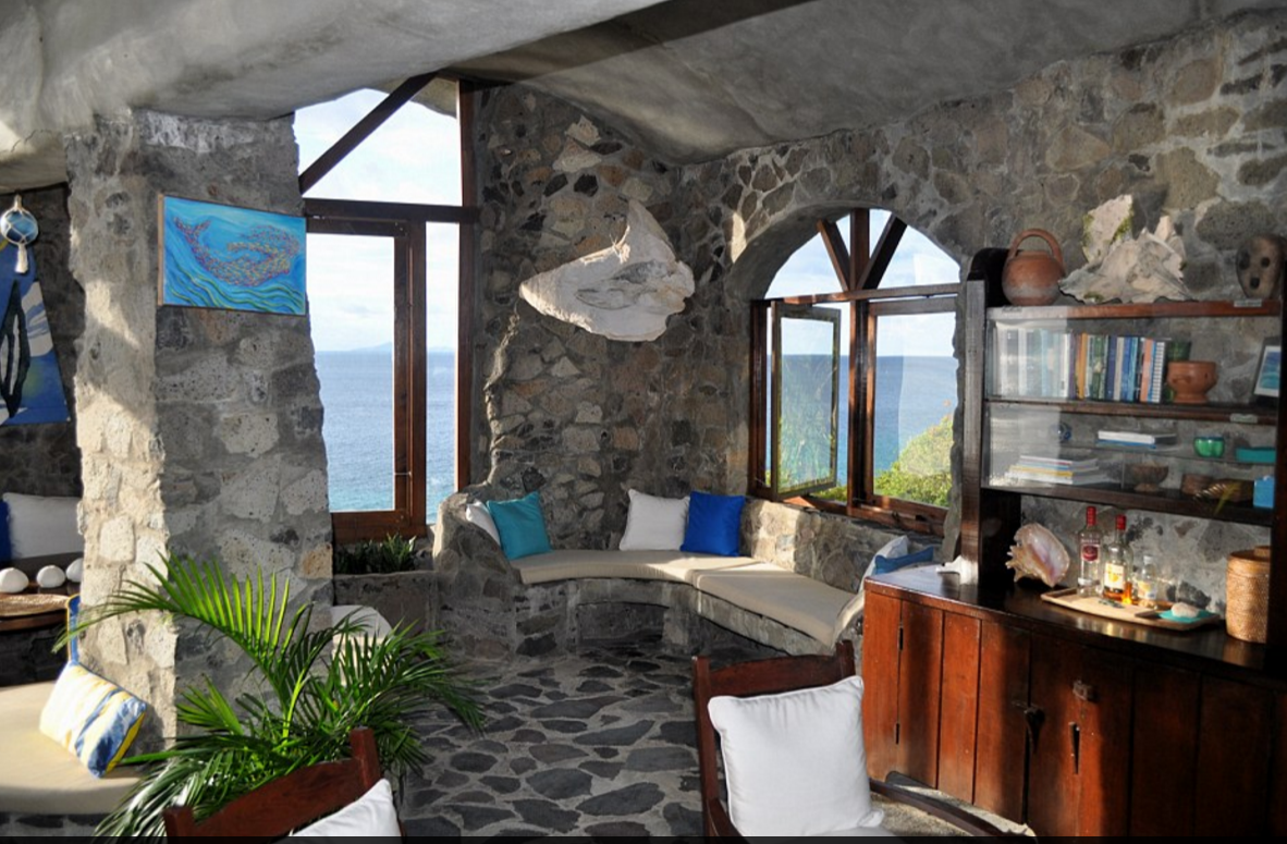 Escondido bajo una roca, al lado del mar Caribe, encontrarás el resort Moonhole, en la isla de Bequia, que forma parte del archipiélago de Las Granadinas.