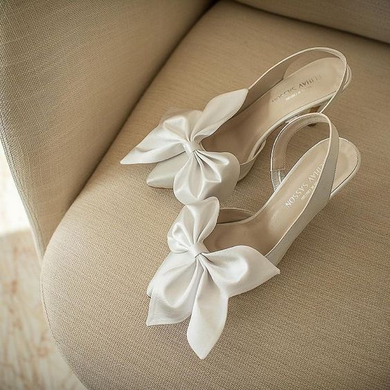 El año pasado los zapatos cómodos y contrastantes con el vestido eran los favoritos. Este año las zapatillas blancas están de regreso, ya sean en un modelo abierto o cerrado. Y si llevan moños, mucho mejor.