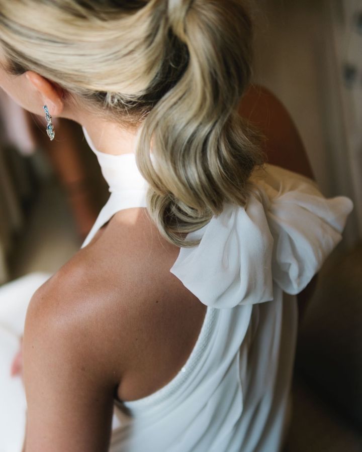 El estilo coquette se ha convertido rápidamente en uno de los favoritos de este año, y uno de sus elementos característicos son los moños. Un elemento que ha adoptado el mundo nupcial para agregar un toque romántico y delicado a las novias, ya sea como parte del tocado del cabello o en el mismo vestido.