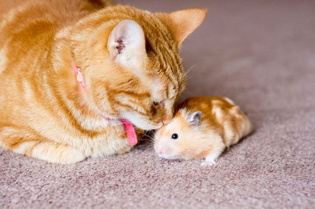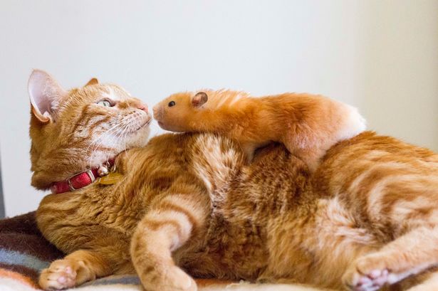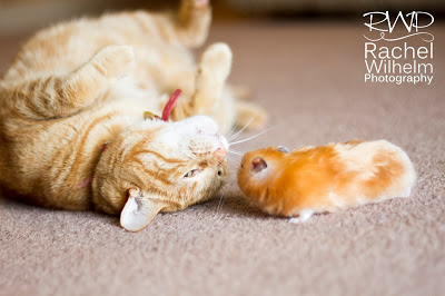 En una de las sesiones fotográficas con su roedor, decidió traer a su gata Penny para ver cómo reaccionaban estando cerca el uno del otro.