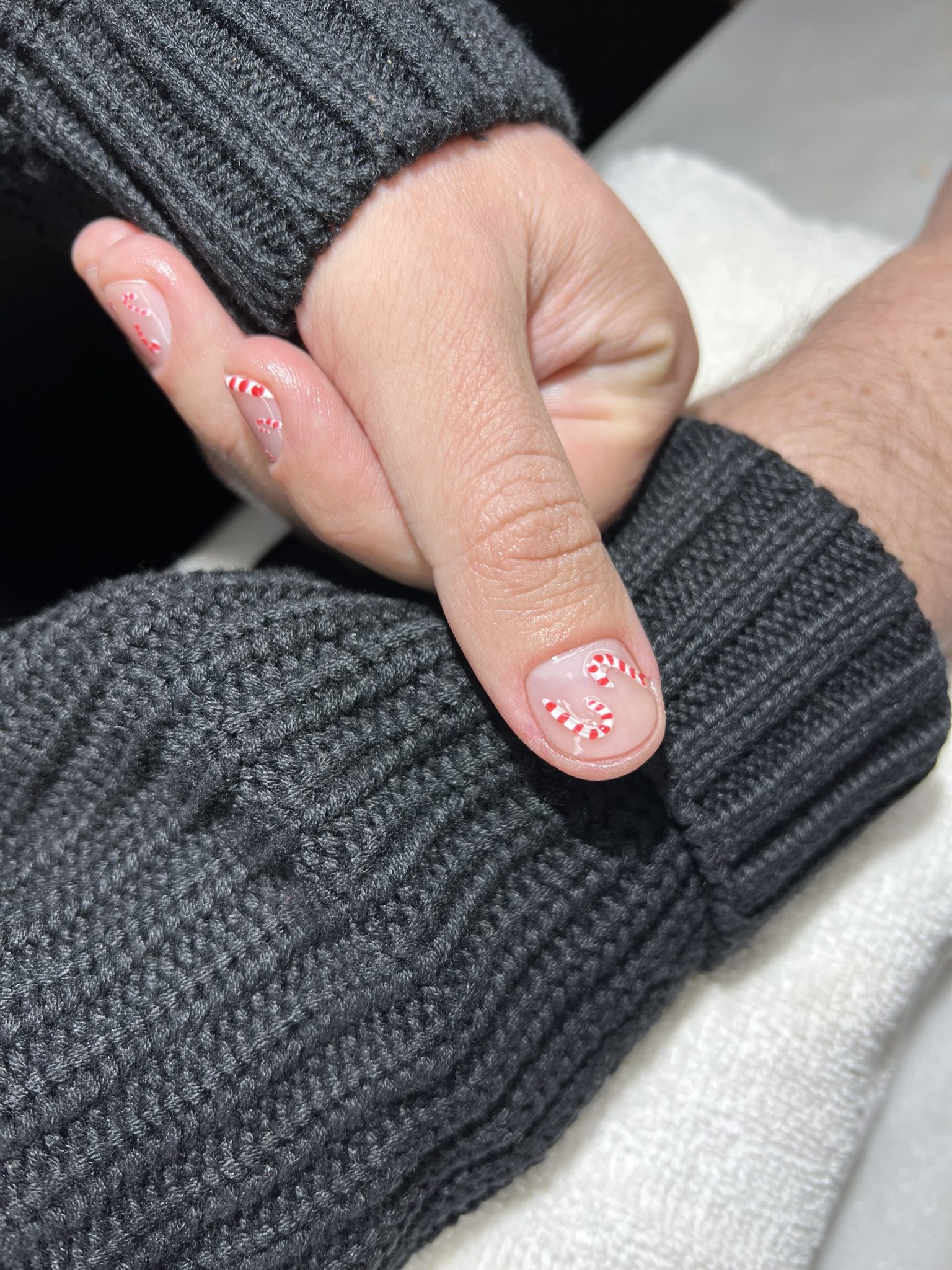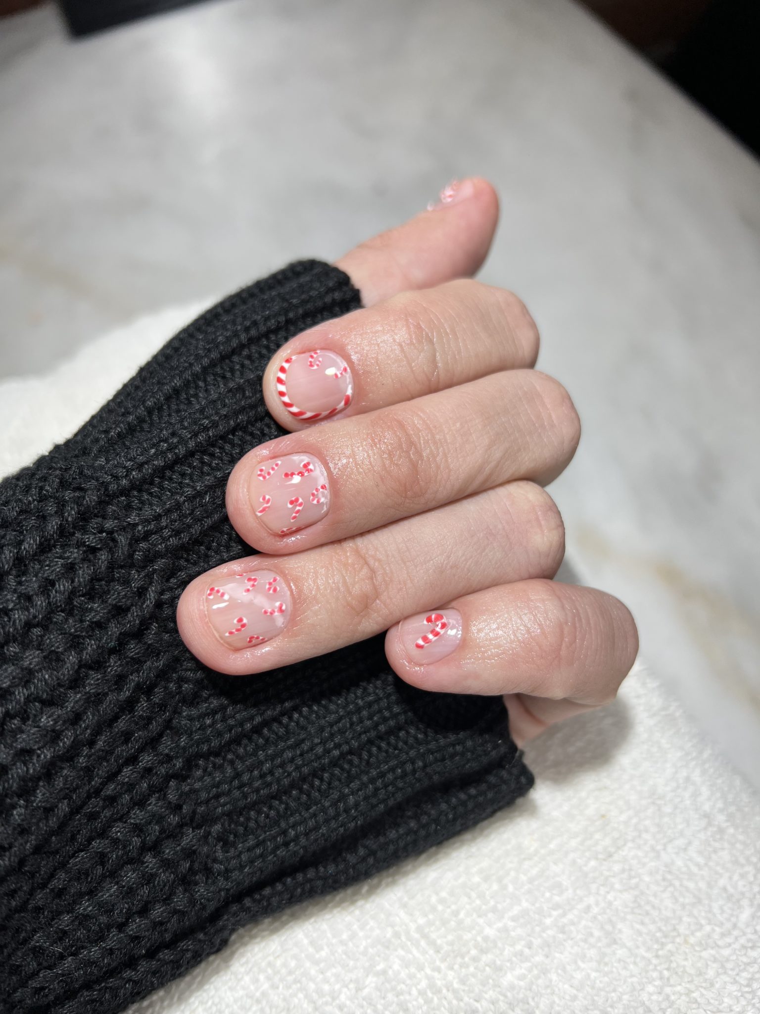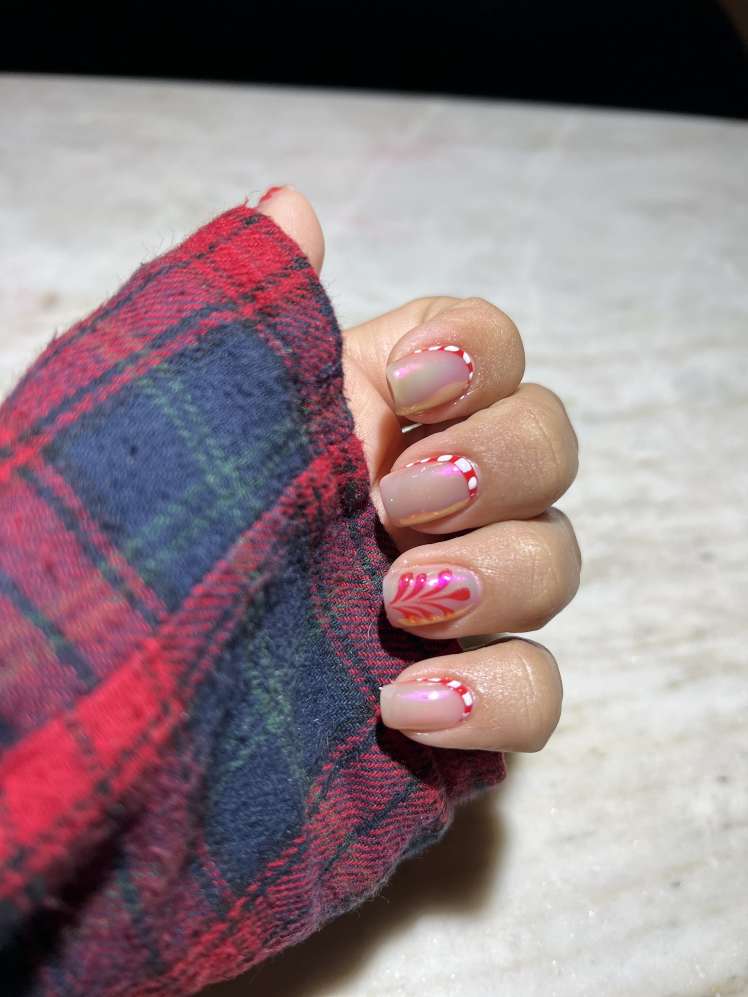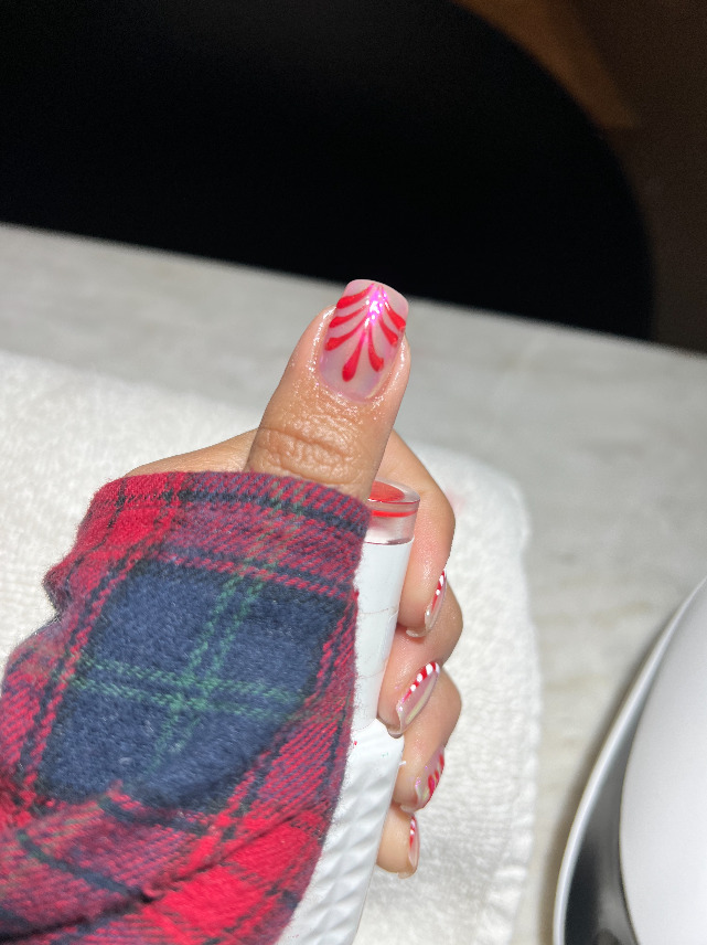 Discreto, elegante, rápido y muy ad hoc con la temporada. Dale a tus uñas un toque dulce con este diseño que intercala un tapiz de bastones de dulce con un francés con el mismo patrón y un detalle de relieve en el bastón único del dedo pulgar.