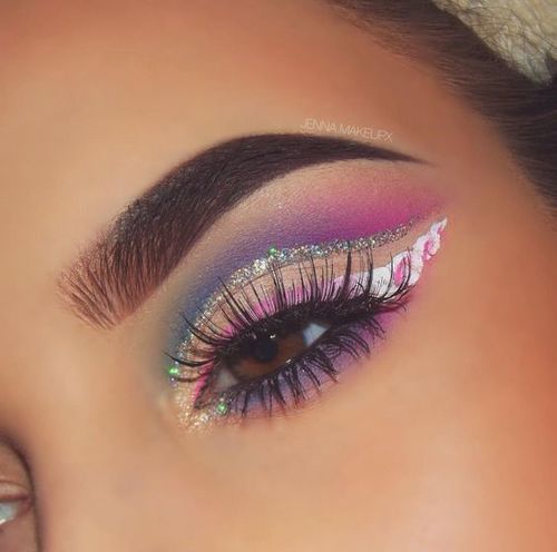 Sí, así como lo leen, el delineado tipo cate eye, se ha transformado. Este maquillaje se logra mezclando colores pastel tipo púrpura, rosa y azul y pintando un cuernito al final.