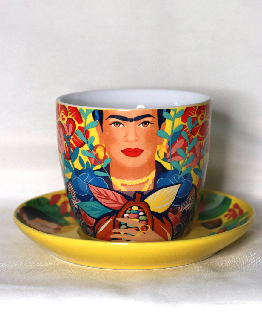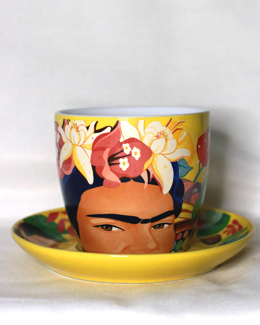 No es sorpresa que justo en esta campaña se haya elegido a Frida como musa de inspiración, pues en sus obras lograba plasmar su visión y amor por nuestro país. Ahora, en estas seis tazas y 1 plato de edición limitada se trata de transmitir a través de los colores vibrantes y patrones llenos de detalles la esencia de México.