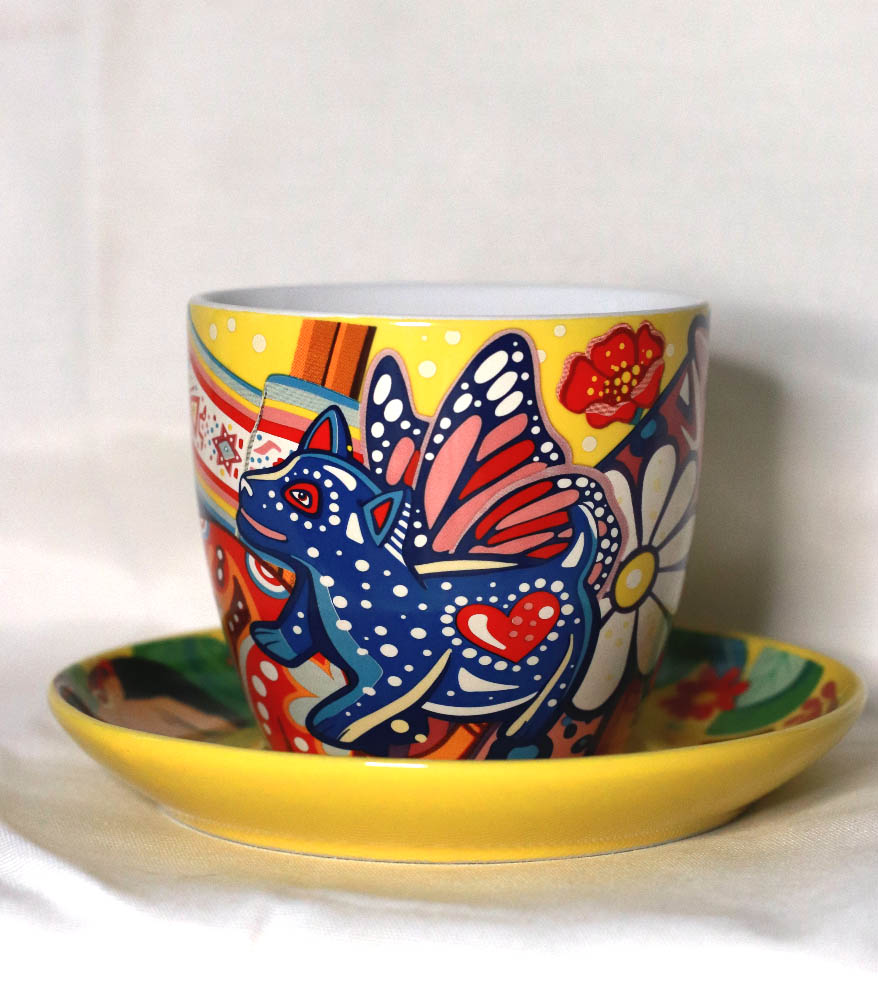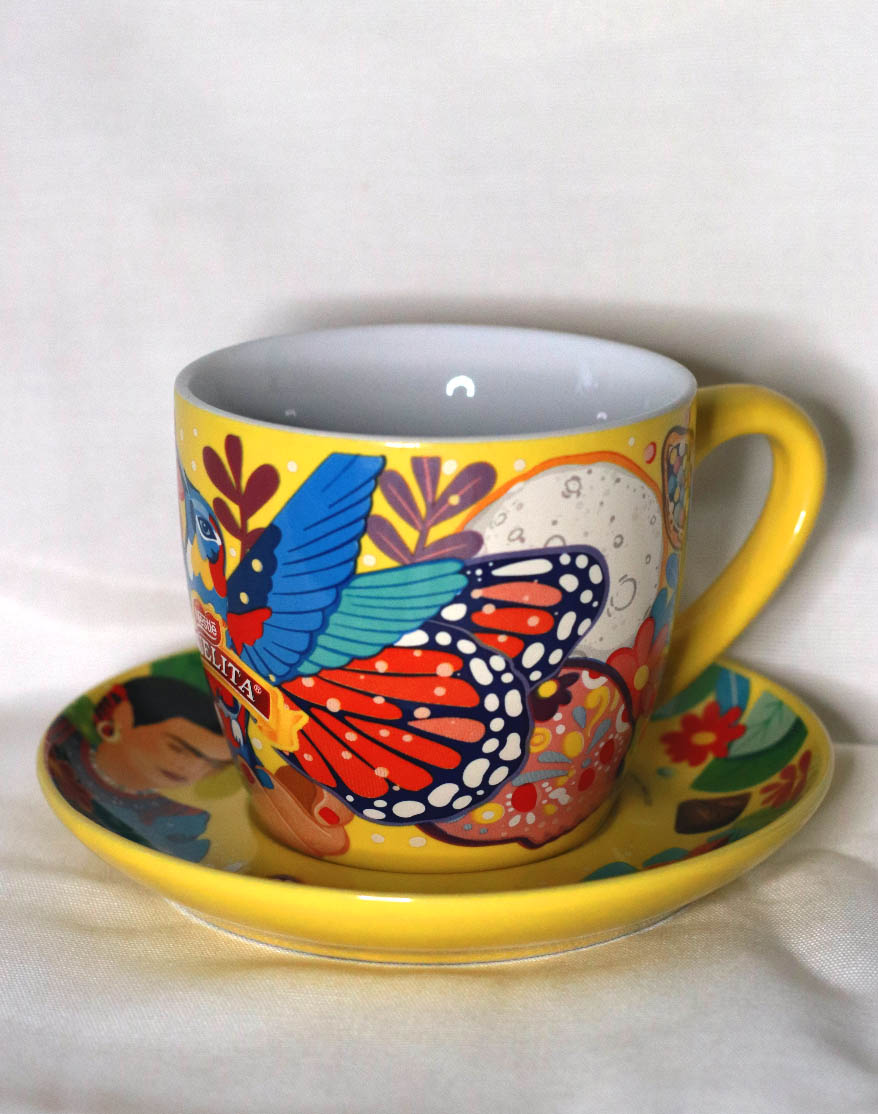 Además, estas ediciones llegan acompañadas de una colección de tazas intervenidas por la artista gráfica Sofía Castellanos, quien en cada diseño plasma la belleza y colores de las obras de Frida Kahlo.