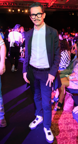 El diseñador y empresario David Souza se arriesgó con unos pantalones metálicos y unos creepers negros. ¡Wow!