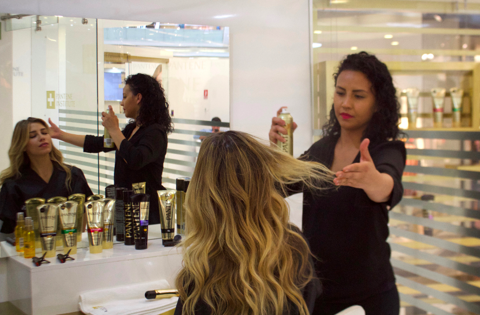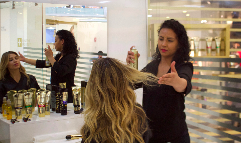 En la cabina le realizaron el análisis de pelo personalizado en el cuál se pudo dar cuenta del nivel de daño de su pelo y así pudo ver cuál sería el producto de la linea Pantene que mejoraría ese daño.