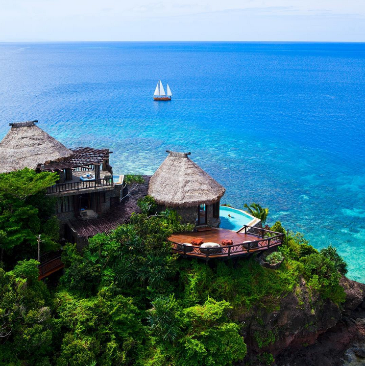 Sólo hay un resort en este lugar, pero no necesitarás más, pues sus instalaciones son impresionantes. Armonizando con la salvaje naturaleza del lugar, las villas del Laucala Island Resort te harán sentir como el rey de la isla, pues fueron diseñadas para que tengas total privacidad y no te encuentres con otros huéspedes, además de una vista impresionante del mar turquesa.