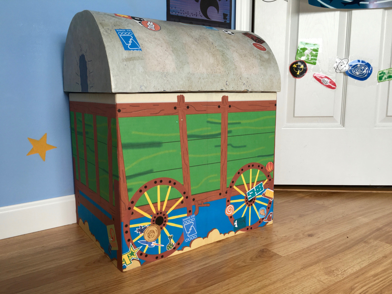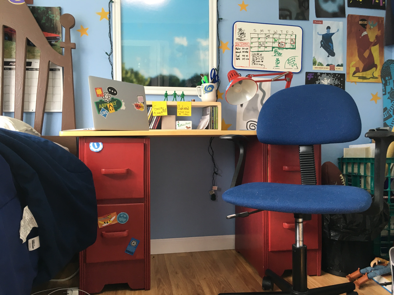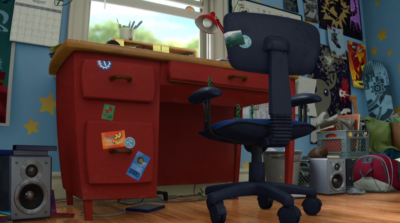 Con materiales que estaban al alcance de su mano, y artículos que encontraron en tiendas de baratijas o que recolectaron con amigos y familia, esta habitación tiene todos los detalles que pueden verse en la película, como la cabecera en forma de luna, la guitarra eléctrica o el baúl de juguetes. The Pixarist y su equipo incluso realizaron el diseño de los posters y estampas que necesitaban para decorar las paredes y la puerta de la habitación.