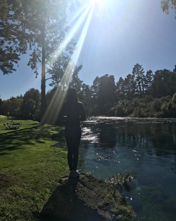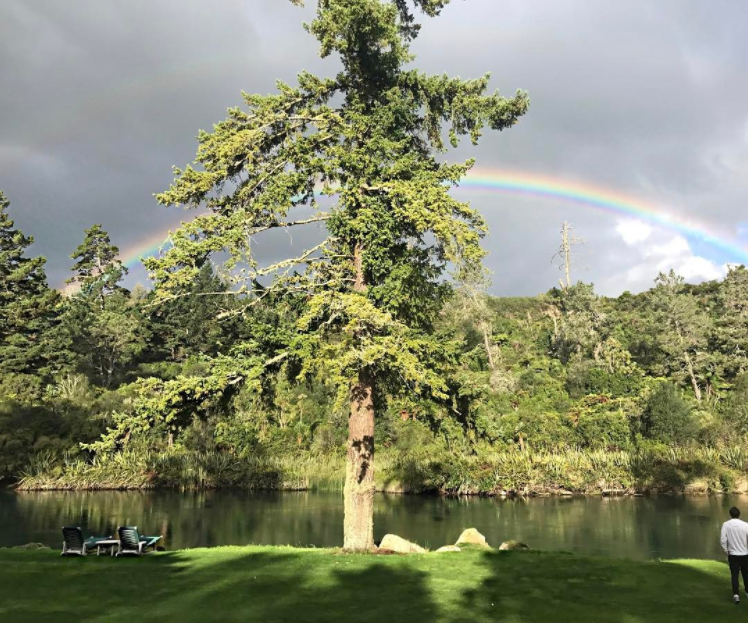 La feliz pareja se encuentra hospedada en el hotel Huka Lodge, el cual le dio la bienvenida con un maravilloso arcoíris.