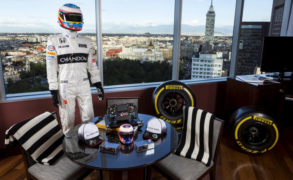 Como parte de este magno evento, el Hotel Hilton Reforma en la Ciudad de México, inauguró una suite temática de la escudería McLaren-Honda, en la que encontrarás trajes del piloto Fernando Alonso, así como réplicas del monoplaza a escala, llantas y hasta banderas a cuadros que se encuentran por toda la habitación, convirtiéndola en un auténtico museo donde podrás hospedarte como siempre soñaste.