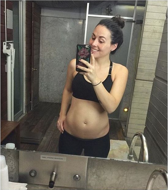 Hace una semana también compartió una imagen en la que gracias a un comparativo de fotos, se ve como lucía su pancita las primeras semanas de embarazo y como se ve ahora.